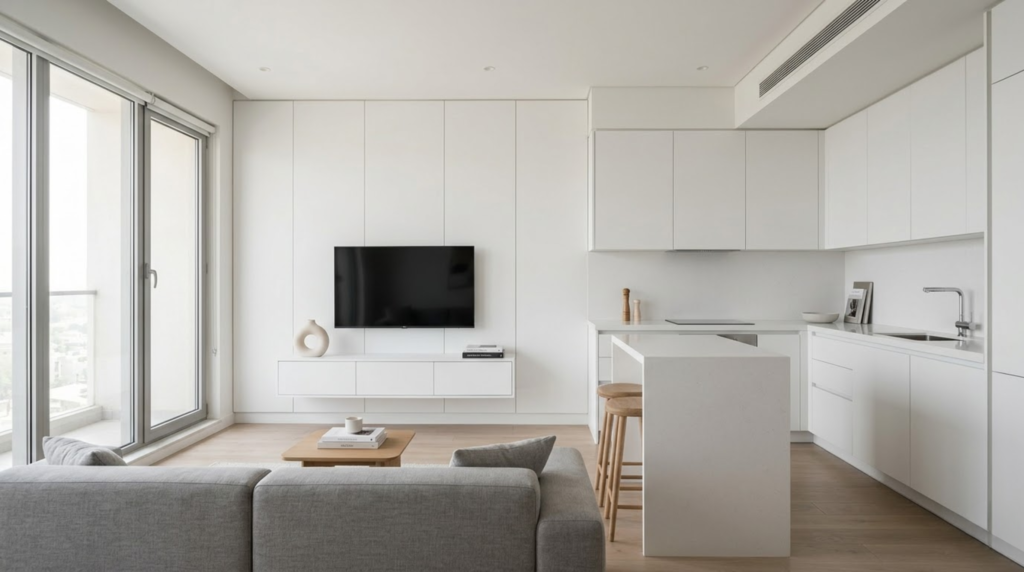 Project Type: Feature Wall, Minimal Finish: Solid White, Residential